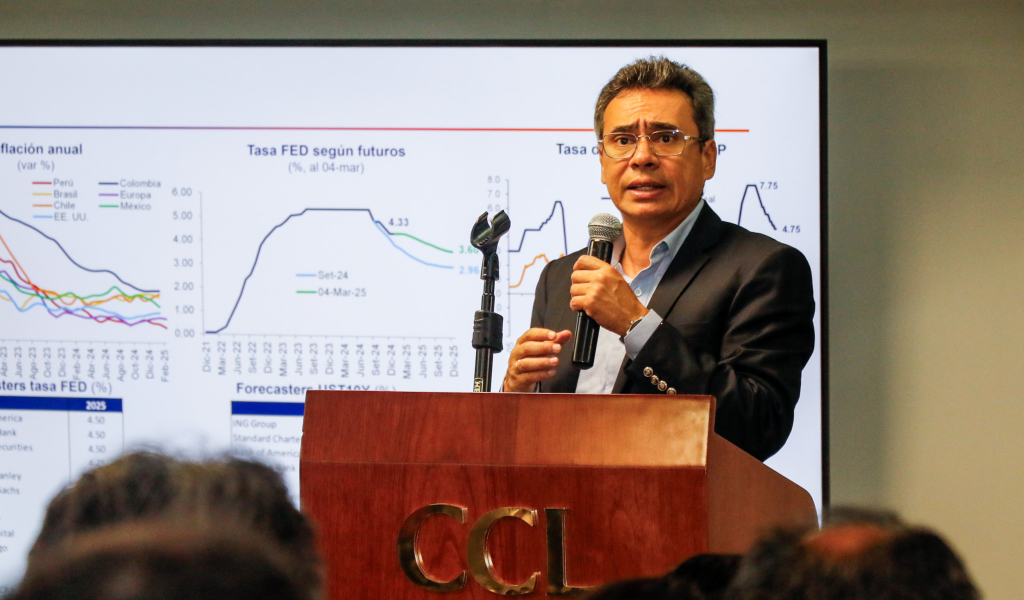 El evento tuvo como expositores a Óscar Chávez, jefe del Instituto de Economía y Desarrollo Empresarial (IEDEP) de la CCL, y Carlos Prieto, gerente de Estudios Económicos del BCP. Durante su intervención, Chávez abordó las restricciones que limitan el crecimiento potencial de la economía peruana, destacando tres factores clave: informalidad laboral y empresarial, infraestructura insuficiente e institucionalidad débil.