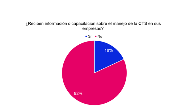 El 82 % indica que no recibe información o capacitación sobre la gestión de la CTS, mientras que el 18 % si la recibe.