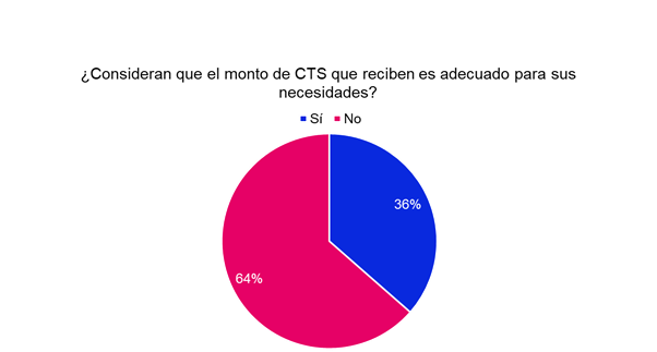El 64 % de los talentos en el Perú considera que el monto recibido de CTS no es adecuado para cubrir sus necesidades, mientras que el 36 % está conforme con lo que recibe.