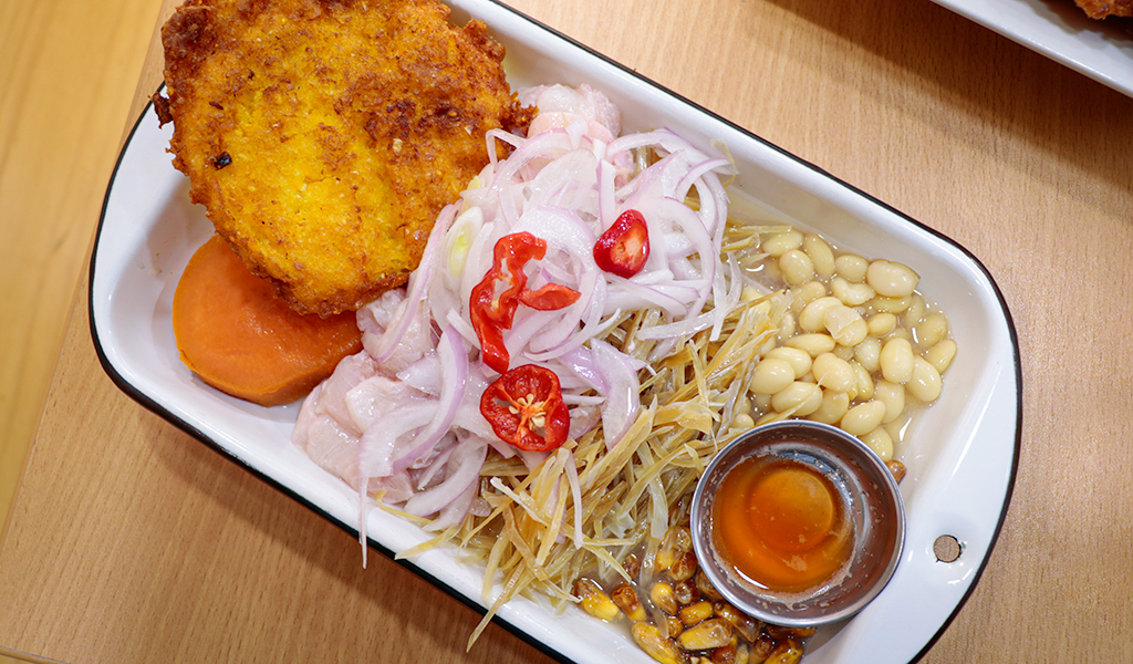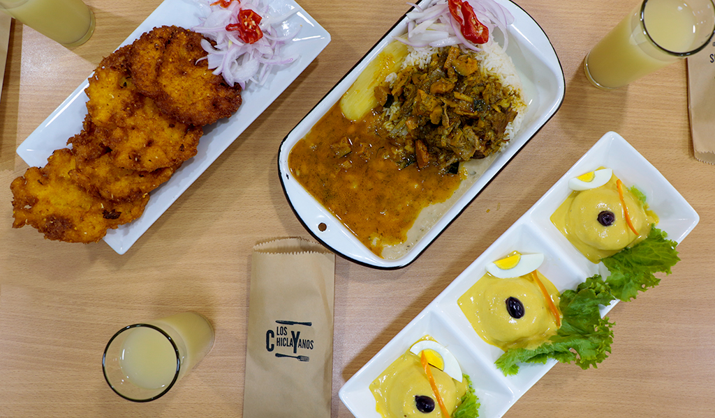 De ahí que los platos cuenten con insumos traídos desde Chiclayo como el cabrito, el zapallo loche, los choclos, entre otros. Además, cada plato tradicional se puede acompañar de una rica chicha de jora o de la famosa gaseosa norteña Casinelli. Aquí el cabrito, los cebiches de caballa y chinguirito acompañados de zarandaja, así como las torrejitas o su papa a la huancaína chiclayana son tan demandadas como alabadas.