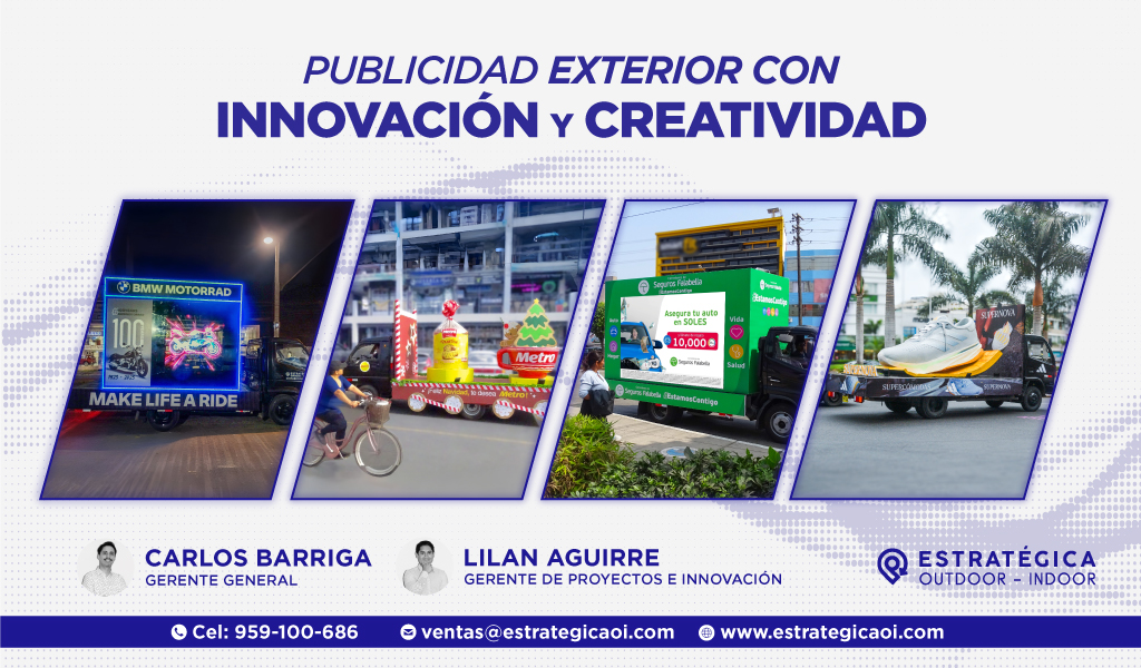 A medida que la demanda por soluciones publicitarias innovadoras sigue creciendo, Estrategica OI no se detiene. Además de su presencia en la ciudad, la empresa está expandiendo su impacto hacia Lima y provincias, llevando sus vallas móviles y otros elementos publicitarios a nuevas audiencias. Esta expansión refuerza su liderazgo en el mercado y demuestra la confianza que las marcas depositan en su capacidad para ofrecer resultados efectivos.
