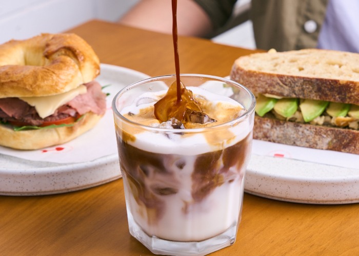 Para acompañar, pueden pedir huevos revueltos o una porción de tostadas. Y si visitan el local más cerca de la hora de almuerzo y desean algo más contundente, contamos con una variedad de sándwiches. Está el de roast beef, que mencioné antes, pero también existe la opción de armar tu propio sándwich con pan de masa madre, baguette, bagel y diversas alternativas de proteínas y toppings.