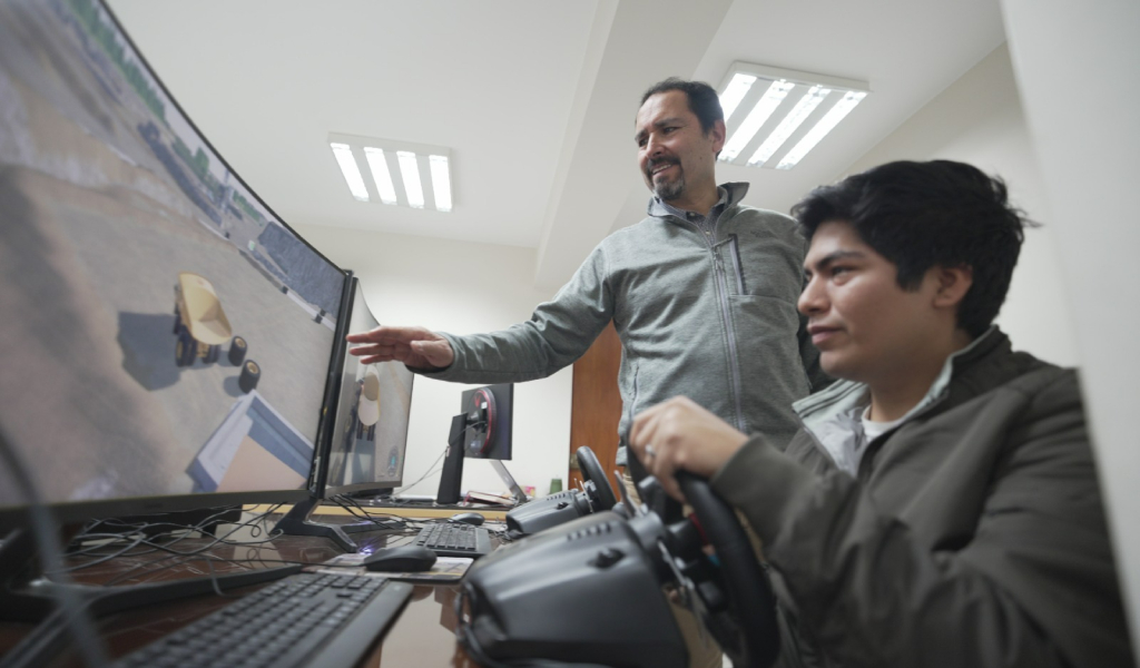 “Este sistema es para minería superficial y la parte práctica de método de explotación superficial. Pueden ingresar unos 15 estudiantes a la vez, ya que desempeñan distintos roles. La forma como lo operan es parecida a los videojuegos, donde ellos van a familiarizarse con la operación minera y comprender mucho mejor la teoría”, explicó Paredes.